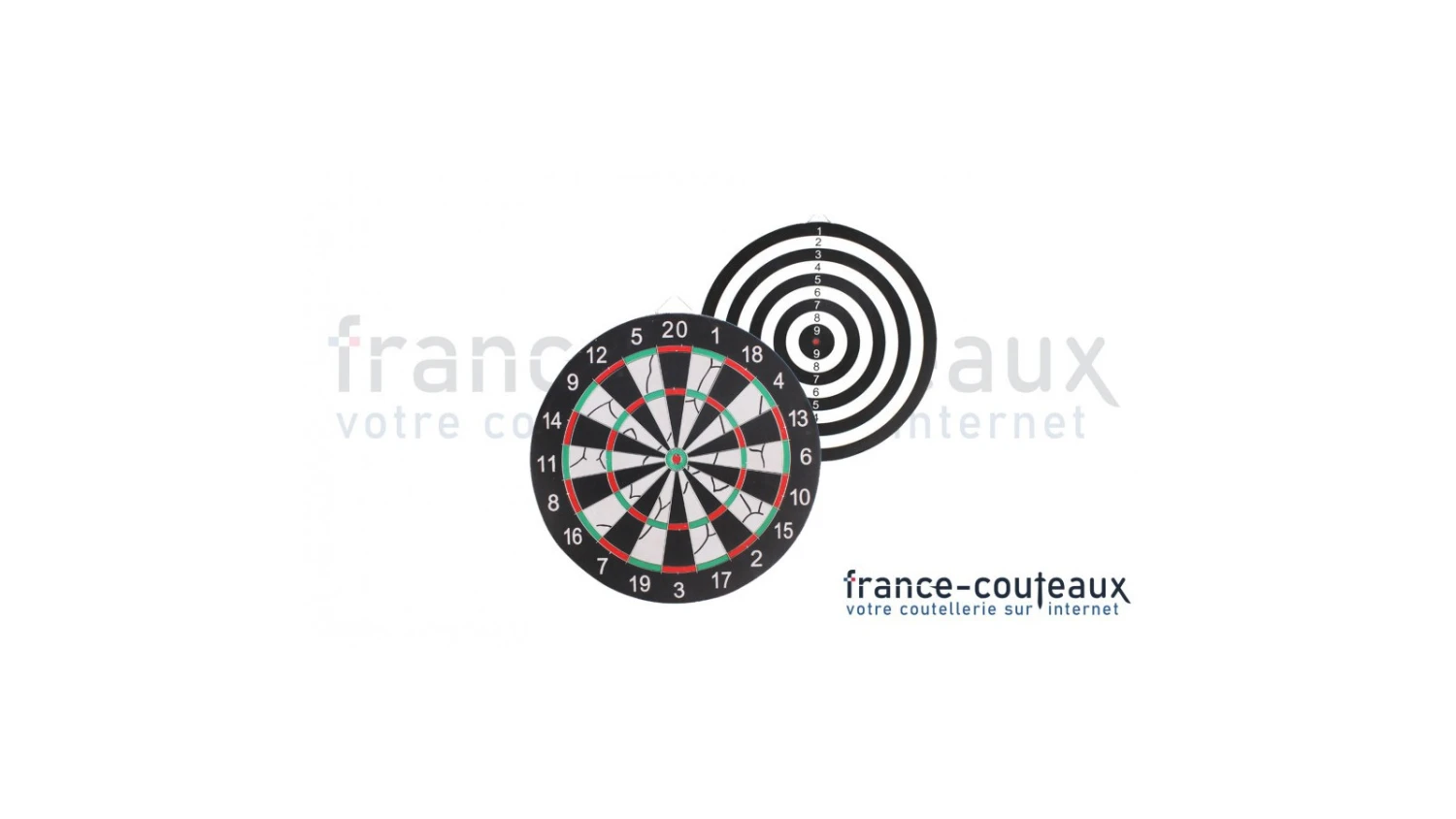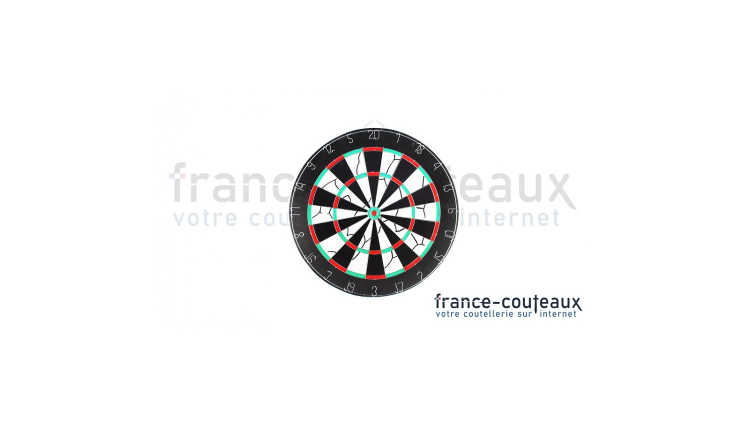 D’un côté, le classique cadre pour le jeu de fléchette 501 et de l’autre une cible classique qui va de 1 à 10 plus on se rapproche du centre.