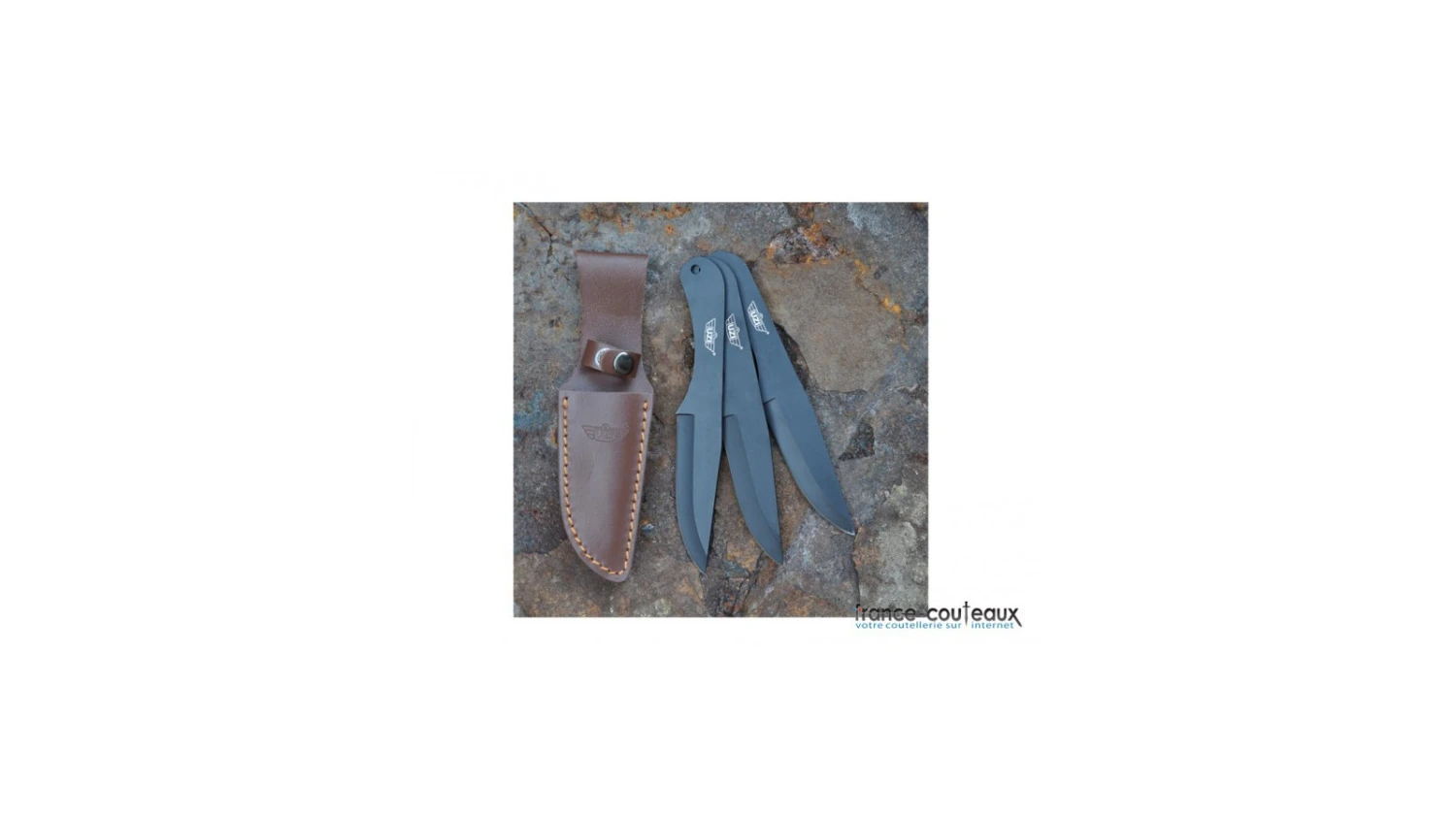 3 Couteaux de lancer UZI avec étui en cuir