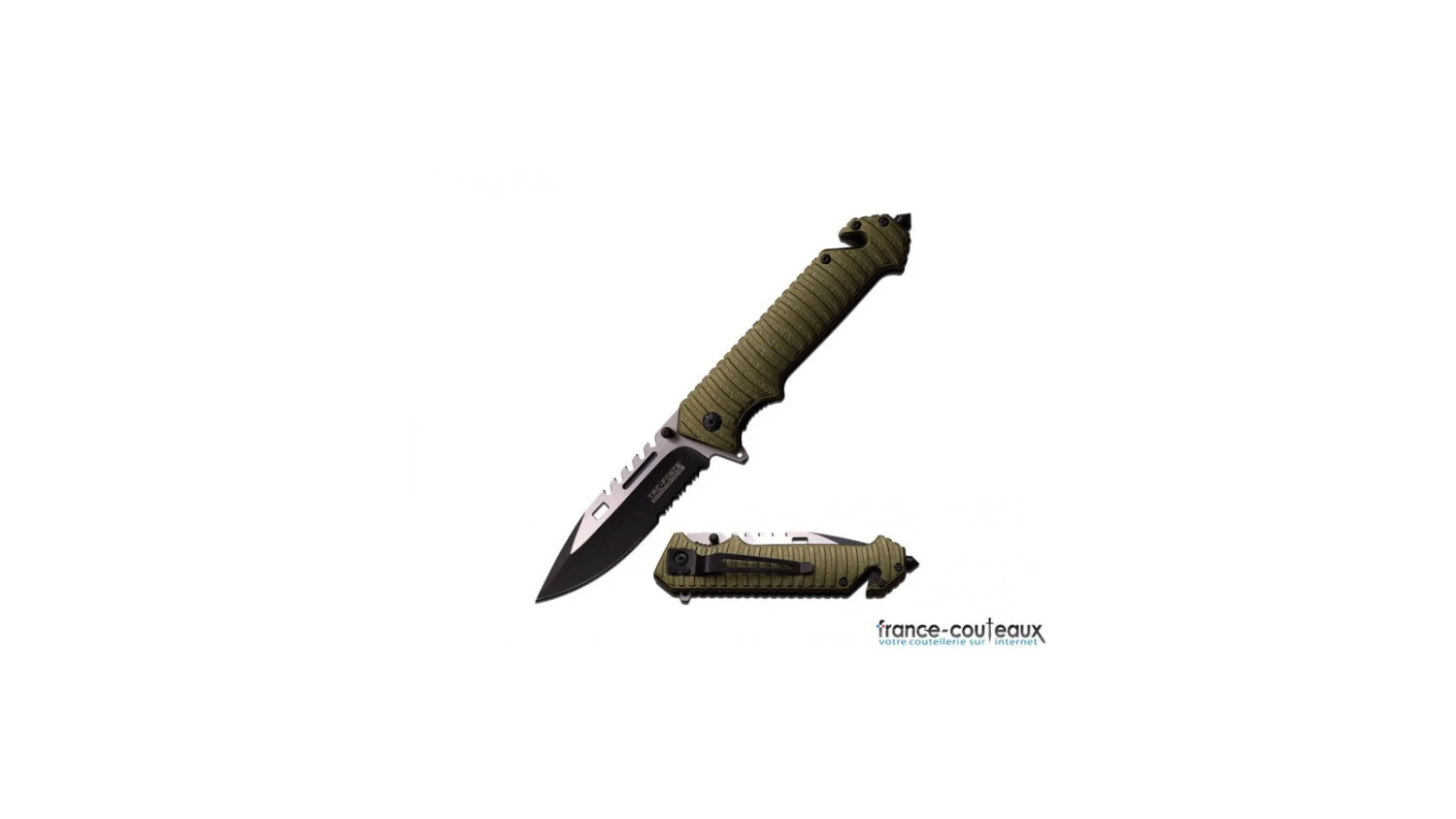 Le manche du couteau TAC Force est doté d’un brise-vitre en forme de diamant, offrant une grande résistance pour briser facilement les vitres latérales de véhicules en cas d’urgence. De plus, il est équipé d’un coupe-ceinture intégré, permettant de couper rapidement et efficacement les ceintures de sécurité.