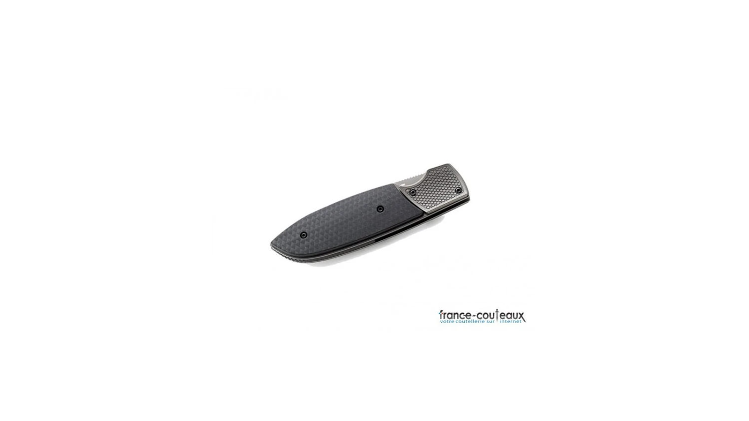 Il est conçu dans un acier inoxydable 8Cr13 Mov revêtu d’une très fine couche de titane gris. le manche est recouvert de plaquettes GRN en nylon et fibre de verre. Le système de verrouillage de lame est Liner Lock. Le manche possède un clip pour le port à la ceinture.
