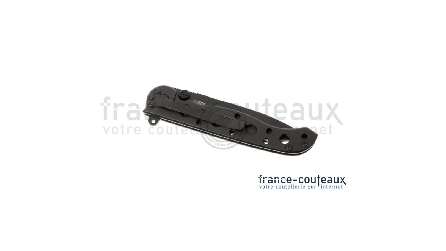 Elle intègre un Carson Flipper afin de faciliter son ouverture ainsi qu’un double thumb stud (bouton de pouce), le verrouillage est assuré par le frame lock.