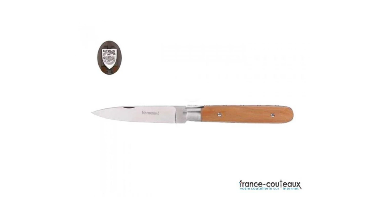 La forme du couteau régional Normand est inspirée par le traditionnel couteau normand le Rouennais. Son ressort est orné du blason représentant les deux léopards d’or, seau de Richard Coeur de lion devenu symbole de la région. Son manche est en pommier bois typique de la région.