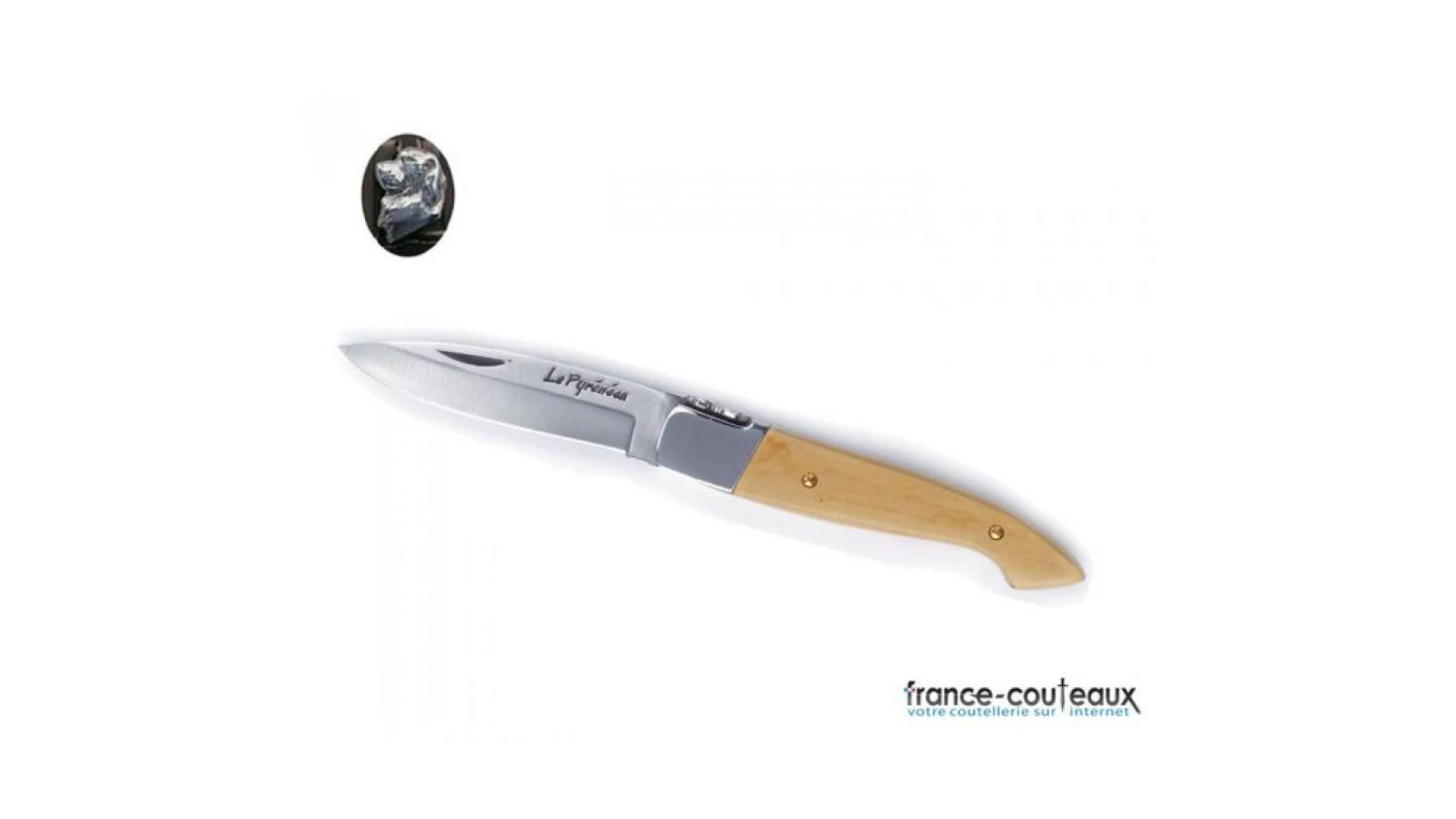 La forme du couteau régional le Pyrénéen est inspirée de celle du capucin, couteau traditionnellement utilisé par les bergers de la région. Son ressort est orné du Patou, chien des pyrénées, défenseur des troupeaux, au tempérament rude et juste, à l’image des gens de cette contrée. Son manche en buis, bois typique de la région :extrêmement dur, il est utilisé pour la sculpture et le tournage.