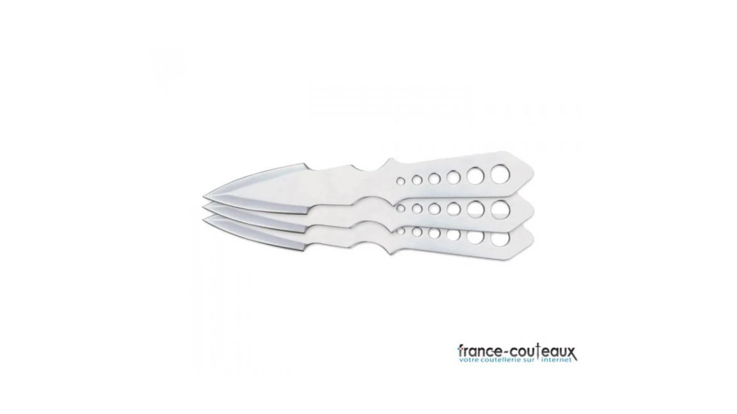 United Cutlery propose un ensemble de couteau de lancer de qualitĂ© professionnelle en acier inoxydable 420. Les couteaux Lightning Bolt sont Ă©quilibrĂ©s Ă la perfection pour obtenir un jet trĂšs prĂ©cis. L’Ă©tui en polymĂšre moulĂ© est entiĂšrement rĂ©glable pour ĂȘtre portĂ© Ă la ceinture, dans le dos ou Ă l’Ă©paule.