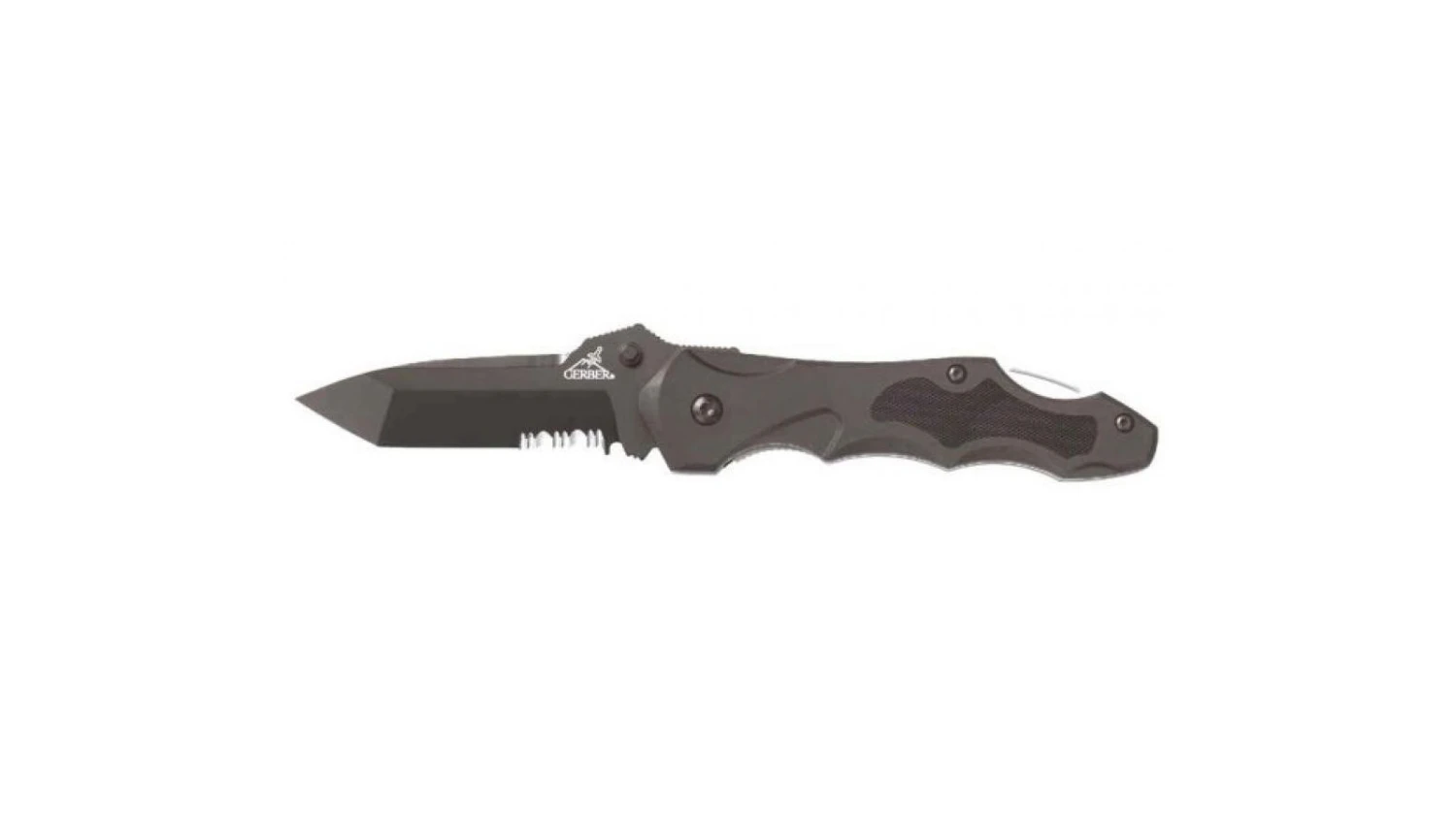 - Lame mixte tanto et crantée en acier inoxydable noire