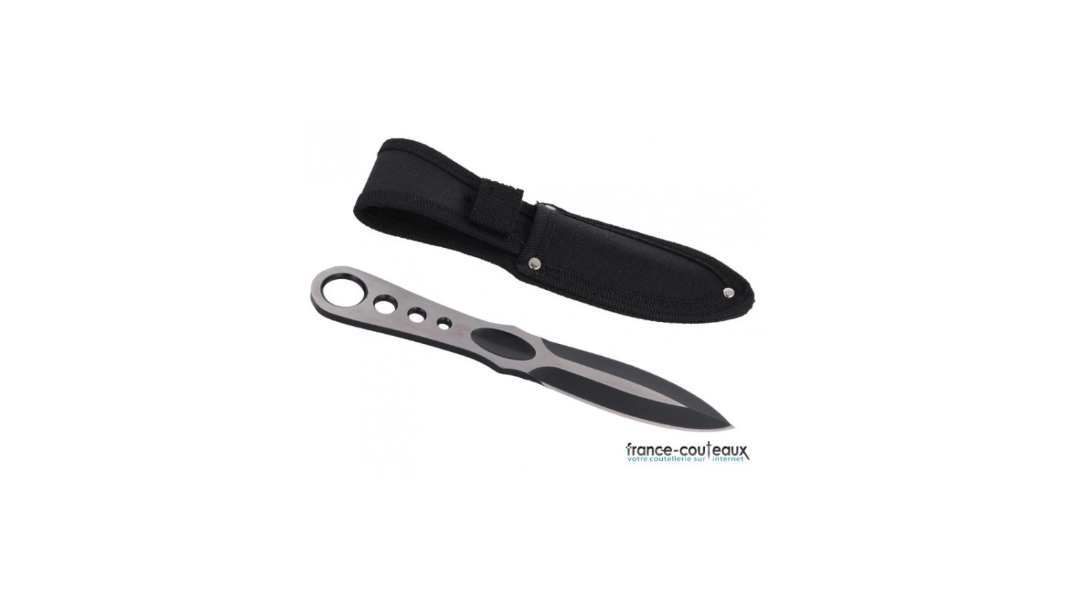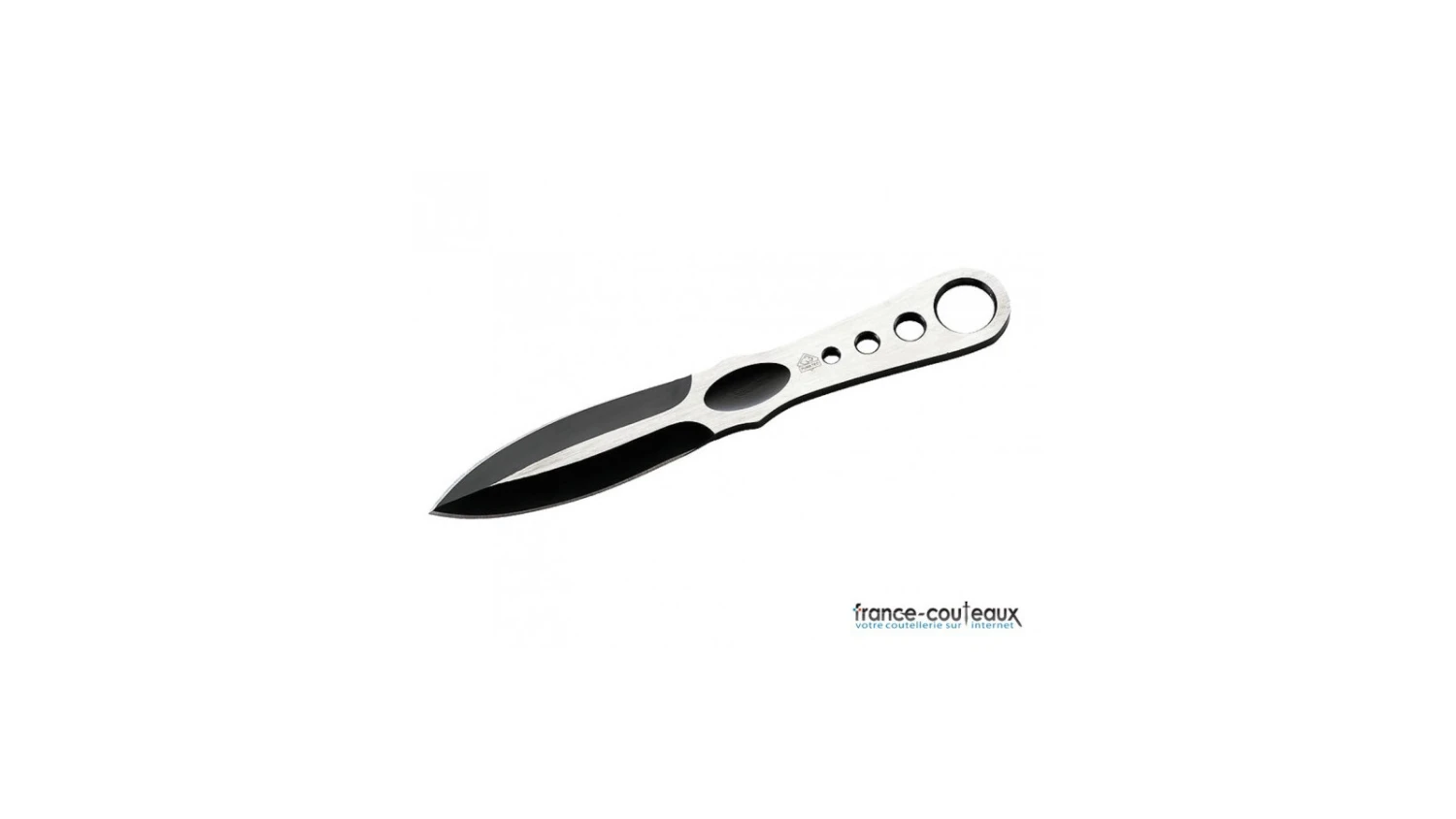 Grand couteau de lancer de marque Puma Tec réalisé d’une seule pièce d’acier AISI 420 ce qui lui procure une grande résistance et une stabilité au lancé. Couteau fabriqué dans la ville de Solingen en Allemagne, gage de qualité. Sa lame en acier dispose d’un double tranchant avec les parties biseautées qui sont revêtue d’une finition noire. Le reste du couteau dispose d’un acier brossé ce qui lui donne un aspect sportif attrayant.