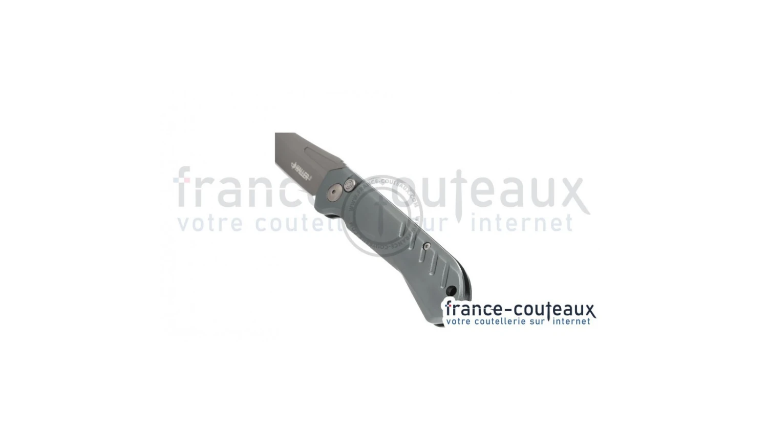 De plus la lame Ă ouverture automatique, renforcera la rapiditĂ© d’exĂ©cution et le rendra disponible en toutes circonstances mĂȘme avec une seule main. L’ouverture de la lame s’effectue Ă l’aide du petit bouton supĂ©rieur, gris foncĂ©. Le mĂ©canisme est solide et puissant lors de l’ouverture mieux vaut bien le tenir si vous ne voulez pas qu’il vous Ă©chappe des mains.