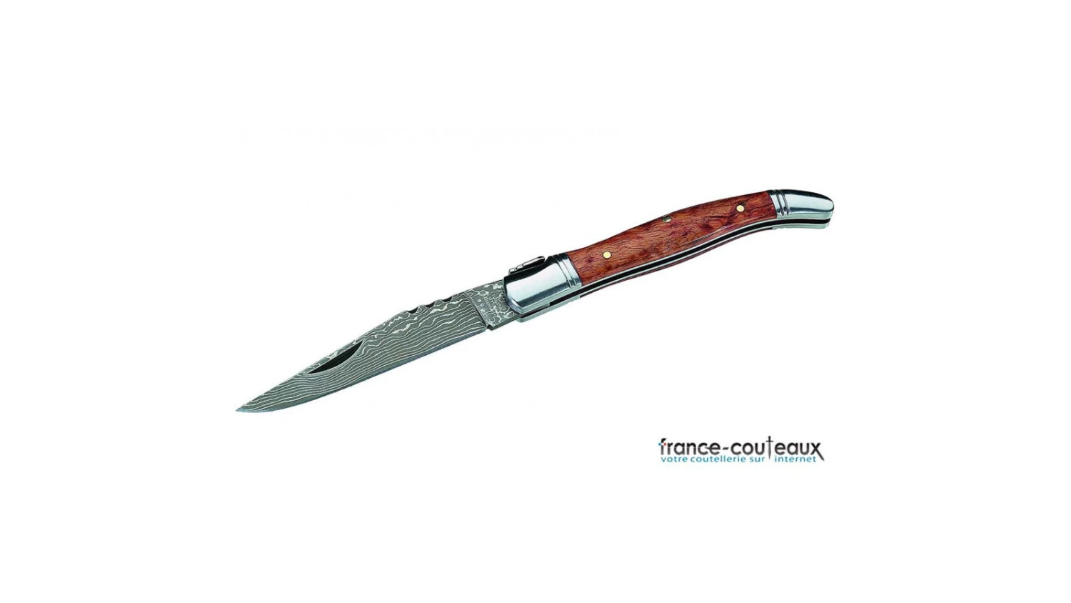 Ce beau couteau de poche dans le style classique Laguiole est équipé d’une lame Damas de 71 couches admirablement dessinées.
