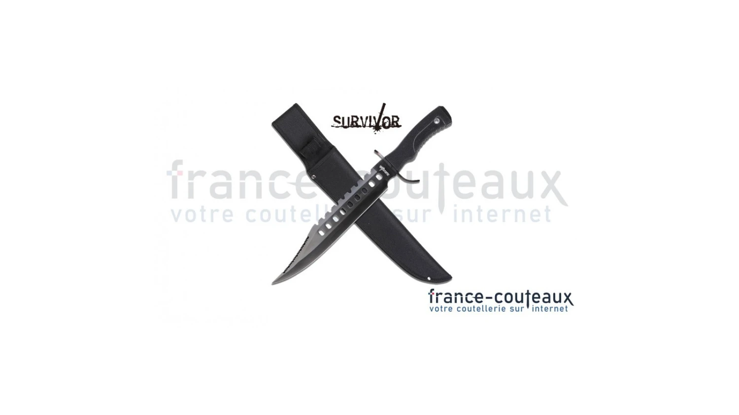 Poignard de combat Survivor type rambo lame noire avec étui en nylon