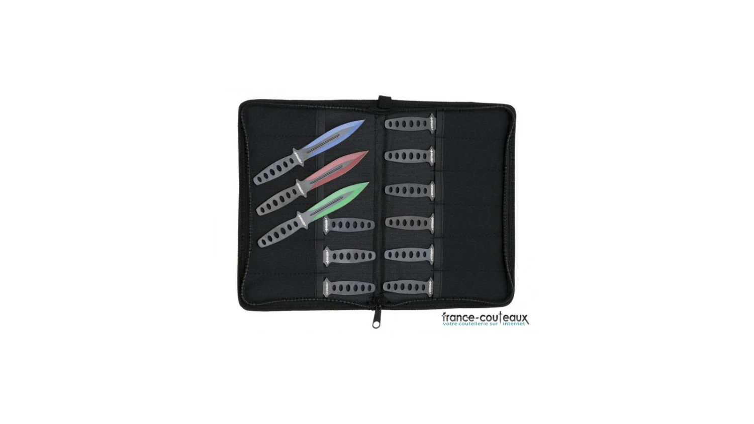 Ensemble de 12 Kunais de lancer noir avec lame colorée et étui en nylon noir