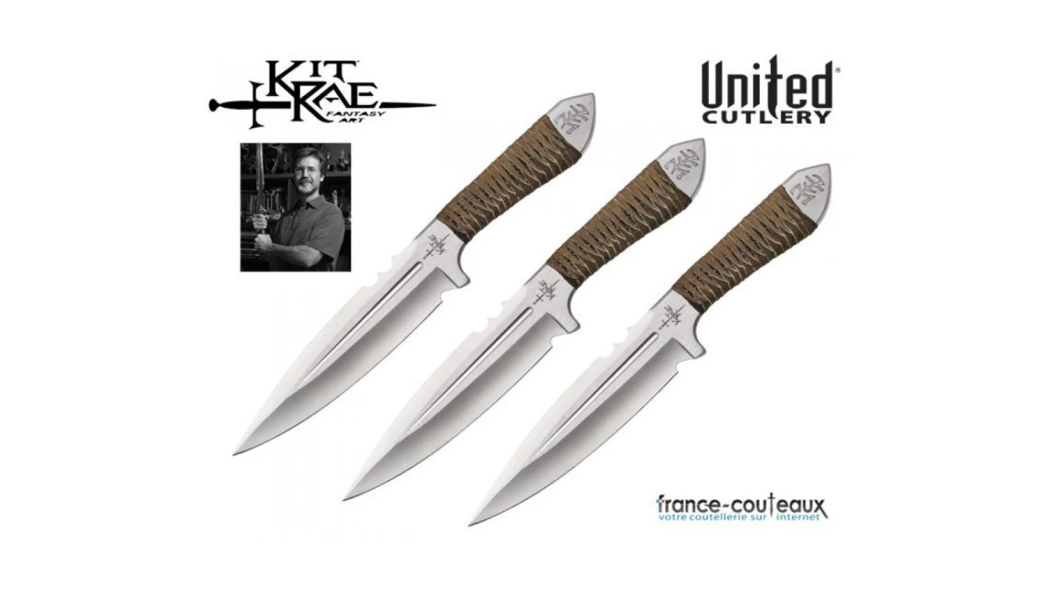Les Couteaux de lancer Aircobra sont signés Kit Rae, l’un des plus grands designers de fantaisie réputé pour ses épées et couteaux fantaisiste, mais Kit est également un lanceur de couteaux passionné. A travers cette gamme de couteaux de jet, il souhaite vous immerger dans son monde imaginaire fait de rêves et de cauchemars fortement inspiré par l’écrivain Tolkien.